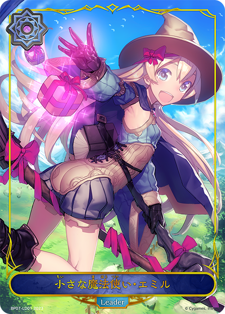 小さな魔法使い・エミル クラス ウィッチ カード種類 リーダー タイプ - レアリティ - 収録商品 ブースターパック第7弾「森羅鋼鉄」 コスト-攻撃力-体力- 巻BP07-LD01