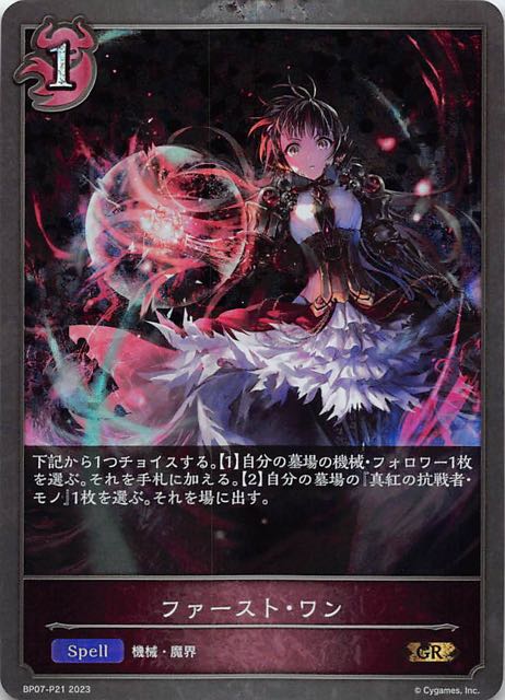 ファースト・ワン クラス ナイトメア カード種類 スペル タイプ 機械・魔界 レアリティ GR・プレミアム 収録商品 ブースターパック第7弾「森羅鋼鉄」 コスト1攻撃力-体力- 下記から1つチョイスする。【1】自分の墓場の機械・フォロワー1枚を選ぶ。それを手札に加える。【2】自分の墓場の『真紅の抗戦者・モノ』1枚を選ぶ。それを場に出す。―――――――――――――――『ナテラの大樹』自然・アミュレットこれが場を離れたとき、1枚引く。自分の手札1枚を捨てる。:これを墓場に置く。 iruaBP07-P21