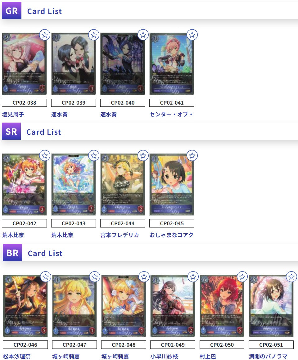 ニューウェーブ クラス ニュートラル タイトル アイドルマスター シンデレラガールズ カード種類 フォロワー タイプ デレマス・キュート・クール・パッション レアリティ LG 収録商品 コラボパック「アイドルマスター シンデレラガールズ」 コスト6攻撃力7体力7 【レッスン_5】:相手の場のカードすべてを破壊する。 イズミン、アコちゃん!お客さん集まってきたよぉ~!それじゃ、始めよう。ニューウェーブのLIVEを、ねっ♪ CP02-104
