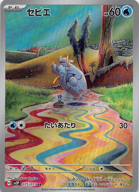 1 進化 HP 270 タイプ このポケモンは、ベンチにいるかぎり、ワザのダメージを受けない。 特性 ばくれつエナジー 自分の番に1回使えて、使ったなら、このポケモンをきぜつさせる。自分の山札から「基本エネルギー」を5枚まで選び、自分のポケモンに好きなようにつける。そして山札を切る。 ワザ ガードプレス120 次の相手の番、このポケモンが受けるワザのダメージは「-30」される。 特別なルール ポケモンexがきぜつしたとき、相手はサイドを2枚とる。