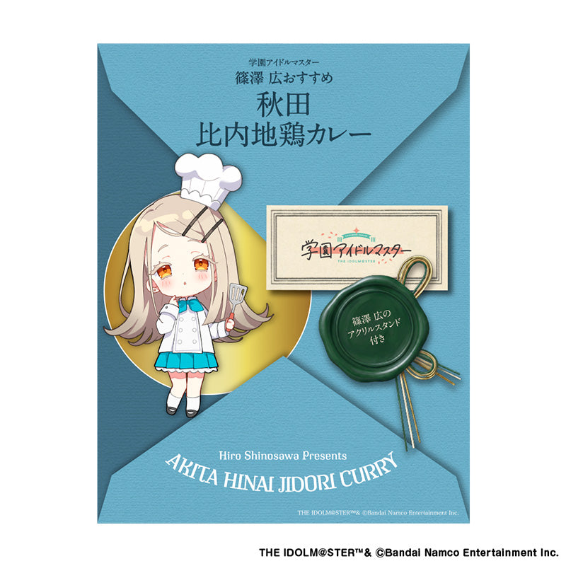 秋田県産比内地鶏を使用した、篠澤 広おすすめのカレー!和風だしのカレールーが香ばしい比内地鶏とよく合います。オリジナルミニキャラのアクリルスタンド付き!カレー[内容量]1パック:200グラム[原材料名]鶏肉(国産/比内地鶏)、玉ねぎ、牛蒡、カレールウ、醤油、みりん、サラダ油、小麦粉、にんにく、昆布かつおだし、砂糖、食塩 / 調味料(アミノ酸等)、カラメル色素、酸味料、香料、pH調整剤、(一部に小麦・大豆・鶏肉・豚肉を含む)[製品に含まれるアレルギー物質]小麦・大豆・鶏肉・豚肉[製造国]日本[保存方法]直射日光・高温多湿を避け、常温で保存してください。[賞味期限]2027年1月アクリルスタンド[サイズ(約)]組み立て前:W 130mm × H 170mm[素材]アクリル