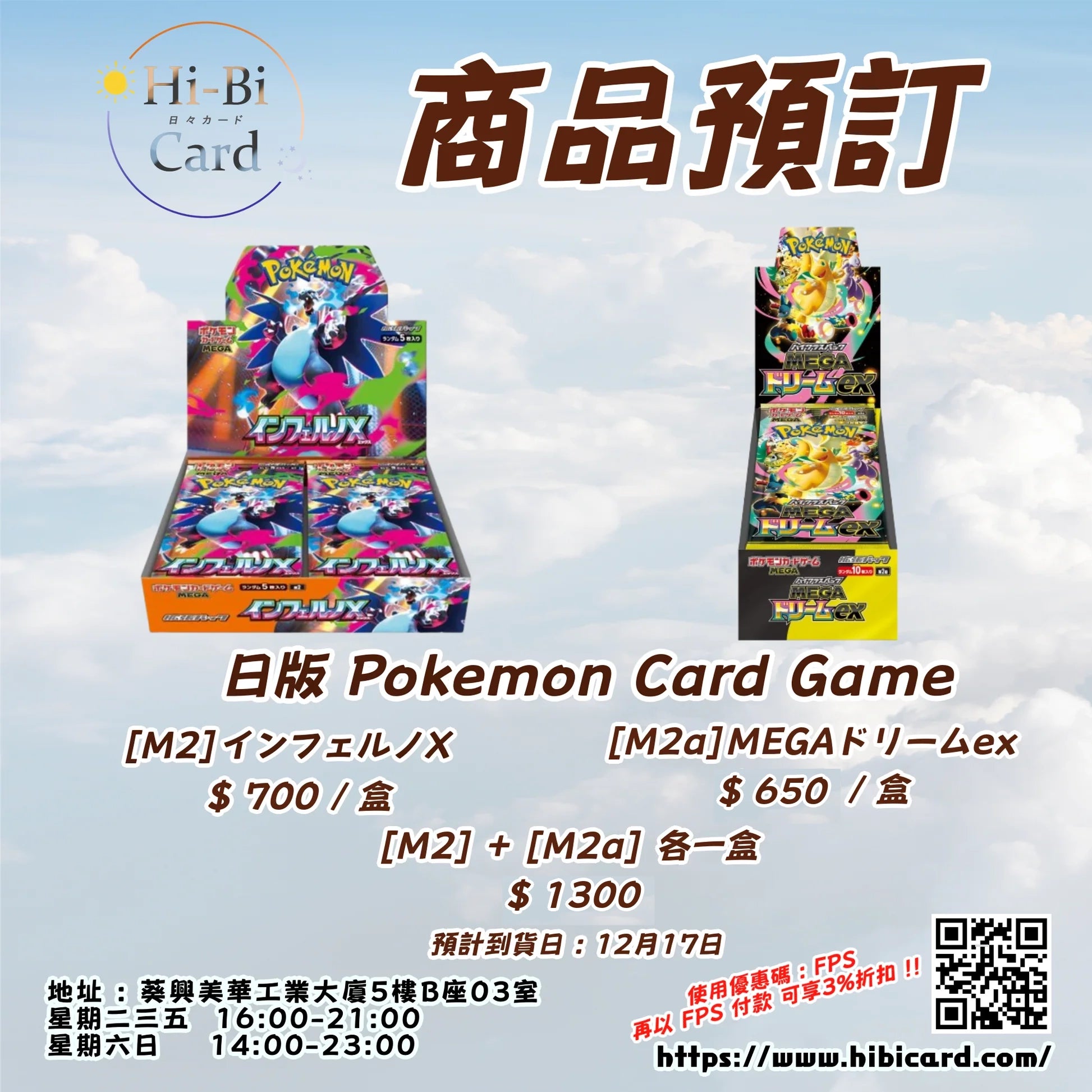 ![PTCG 日版 [M2] [M2A] 「インフェルノX」「MEGAドリームex」原盒](http://www.hibicard.com/cdn/shop/files/PTCG-M2_M2A.webp?v=1765258069&width=1445)